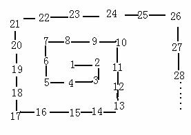 3、如下图自然数按从小到大的顺序排列,在2处拐第一个弯,在3处拐第二弯,问拐第二十个弯的位置是哪一个数?(10)
