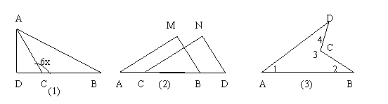 1、如图(1),在Rt△ADB中,∠D=90°,C为BD上一点,则x可能为( )
