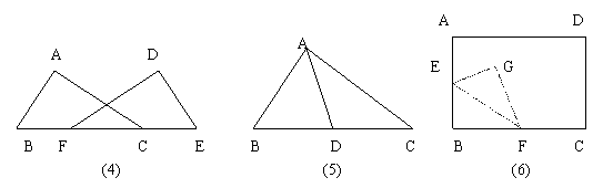14、如图(6),把矩形ABCD的一角折起来,使点B落在G处,∠EFB=40°。