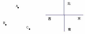 14、A、B、C三点分别代表邮局、医院、学校中某一处,邮局和医院分别在学校的北偏西方向,邮局又在医院北偏东方向,那么图中A点应该是 C点应该是