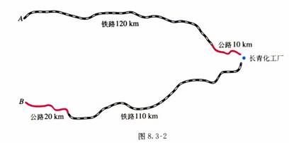教材114页:探究3:如图,长青化工厂与A、B两地有公路、铁路相连,这家工厂从A地购买一批每吨1000元的原料运回工厂,制成每吨8000元的产品运到B地。公路运价为1.5元/(吨·千米),铁路运价为1.2元/(吨·千米),这两次运输共支出公路运费15000元,铁路运费97200元。这批产品的销售款比原料费与运输费的和多多少元?