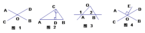 1、如图1,直线AB、CD相交于O,则∠AOC的对顶角是_____,____是∠BOC的对顶角,∠AOC的邻补角是______________。