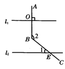 19.如图9,直线L1∥L2,AB⊥L1,垂足为O,BC与L2相交于点E,若∠1=43°,则∠2=_______度.