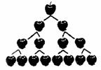 2、右上图是一幅“苹果图”,第一行有1个苹果,第二行有2个,第三行有4个,第四行有8, ……。你是否发现苹果的排列规律?猜猜看,第十行有 个苹果。