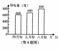 8、学校今年第二季度的用电量如图所示,那么五月份的用电量比四月份多