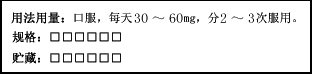 某种药品的说明书上,贴有如右所示的标签,一次服用这种药品的剂量范围是