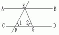如图所示,AB∥CD,直线EF分别交AB,CD于E,F,EG平分∠BEF,若∠1=720, 则∠2=