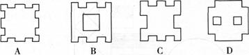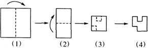 19、将一正方形纸片按图中(1)(2)的方式依次对折后,再沿图(3)的虚线裁剪,最后将图 (4)中的纸片打开铺平,所得图案应该是下面图案中的 ( ).
