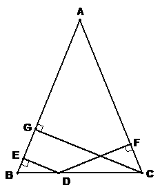 28、如图,在△ABC中,AB=AC,D是BC上任意一点,过D分别向AB、AC引垂线,垂足分别为E、F,CG是AB边上的高