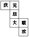 小明在元旦联欢会上为同学们准备了这样一个考眼力的小节目,在正方体的展开图上写有“庆元旦大联欢”六个字,亲爱的同学们你能看出来“庆”字在正方体中所对的字是__________。