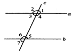 4、如图,直线a、b被直线c所截,现给出下列四个条件:(1)∠1=∠5;(2)∠1=∠7;(3)∠2+∠3=180°;(4)∠4=∠7,其中能判定a∥b的条件的序号是( )