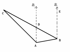 2、如图,C处在B处的北偏西75°方向,C处在A处的北偏西40°方向,求∠ACB。(10分)