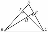 3、在△ABC中,已知∠ABC=66°,∠ACB=54°,BE是AC上的高,CF是AB上的高,H是BE和CF的交点,求∠ABE、∠ACF和∠BHC的度数.(10分)