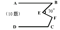 10. 如图:AB∥CD ∠BEF=70O则∠ABE+∠EFC+∠FCD=( )
