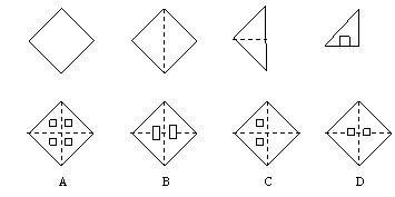 12、一张正方形纸片经过两次对折,并在如图位置上剪去一个小正方形,打开后的图形是( )