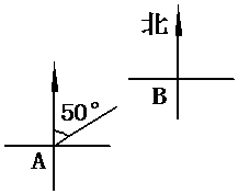 (4分)如图:A、B为两个港口,甲船从A港沿北偏东50°的航向航行,乙船从B港出发,