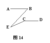 27、如图14,已知AB∥CD,∠B =50º,∠C=150º,求∠E。