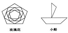 5、请用多边形为构件,尽可能构思设计一个独特且有意义的图案,并在图案下面写上一句贴切的解说词(设计出草图即可)。下图就是符合要求的两个图案。