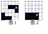 在5×5方格纸中将图(1)中的图形N平移后的位置如图(2)中所示,那么正确的平移方法是( ).