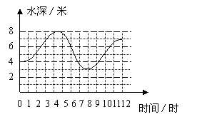 (5分)海水受日月的引力而产生潮汐现象,早晨海水上涨叫做潮,黄昏海水上涨叫汐,合称潮汐,潮汐与人类的生活有着密切的联系,下面是某港口从0时到12时的水深情况.