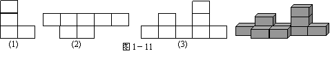 3、如图1-11所示,左面三个平面图形中的______是右面这个物体的主视图.