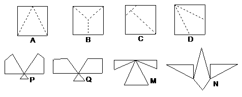 22、如图,将标号为A、B、C、D的正方形沿图中的虚线剪开后得到标号为P、Q、M、N四组图形,试按照“哪个正方形剪开后得到哪组图形”的对应关系,填空: