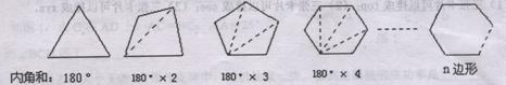 (3)按此规律,n边形可以分成 个三角形;于是n边形的内角和为 度。