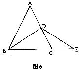23.如图6,在等边△ABC中,BD平分∠ABC,延长BC到E,使BC=2CE,连结D、E,请你找出图中所有的等腰三角形,并说明理由。