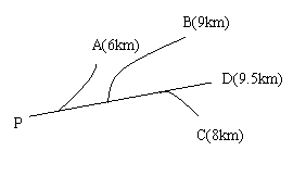 24、小李决定星期日登A,B,C,D中的某山,计划上午9点由P地出发,尽可能去最远的山,到山顶后休息1小时,到下午3点以前回到P地,如果去时步行的平均速度为3 千米/时,返回时步行的平均速度为4千米/时,试问小李能登上哪个山顶?( 图中数字表示由P到山顶的路程)