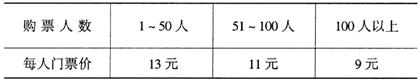 28.某公园的门票价格规定如下表所列。某学校初一(1)、(2)两个班共104人去游园,其中(1)班人数较少,不到50人,(2)班人数较多,超过50人。经估算,如果两班都以班为单位分别购票,则一共应付1240元;如果两班联合起来,作为一个团体购票,则可以节省不少钱。问两班各有多少名学生?