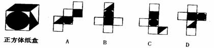 2、下图是一个正方形的纸盒,在它的三个侧面分别画有三角形,正方形和圆,现用一把剪刀沿着它的棱剪开成一个平面图形,则展开图应当是( )