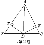 22. 如图,AD是△ABC的角平分线,DE⊥AB,垂足为E,DF⊥AC,垂足为F,你能找出一对全等的三角形吗?为什么它们是全等的?