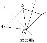 23. 如图,l是线段AB的对称轴,l'是线段BC的对称轴,l和l'相交于点O.OA与OC相等吗?为什么?