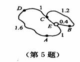 5. 如图是某风景区的旅游线路示意图,其中B、C、D为风景点,E为两条路的交叉点,图中数据为相应两点间的路程(单位:千米)一学生从A处出发,以2千米/时的速度步行游览,每个景点的逗留时间为0.5小时.