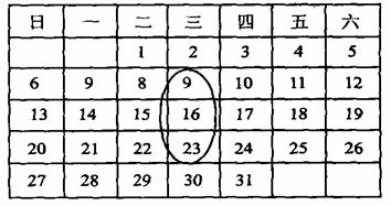 7.在下边的日历中,任意圈出一竖列上的三个数,请你在思考三个数之间的关系后解答下题:若所圈三个数的和为57,则这三个数所在的日期是星期几?(写出必要的计算过程)