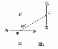 7. 如图2所示,甲、乙两地之间要修一条水渠,从甲地测得水渠的走向是北偏东60°,甲、乙两地同时开工,若干天后准确接通,则乙地所修公路的走向是南偏西_________度.
