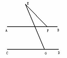 (本题6分)如图,已知点F、G分别是直线AB、CD上的两点,点E在直线AB、CD外,连结EF、EG。若满足∠EGC=∠E+∠EFA,则直线AB与CD的位置关系是什么?请说明理由。