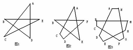 (1) 请你根据已经学过的知识求出右边星形(图1)中∠A+∠B+∠C+∠D+∠E的度数。