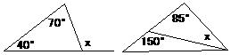 计算下列各图中x的度数(将对应答案填在横线上)
