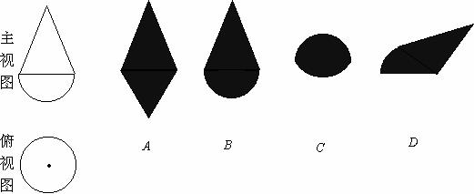 19、 下列左边的主视图和俯视图对应右边的哪个物体 ( )