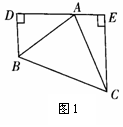 (2)若直线AE绕点A旋转,使B,C在AE的异侧(如图2),其他条件不变,则BD,DE与CE的关系如何?