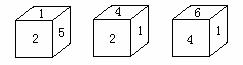 有一块正方体木块,它的六个面上分别标上数字1~6,下图是这个正方体木块从不同面所看到的数字情况,请问5对面的数字是
