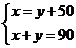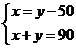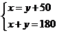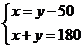 16.一副三角板如图方式摆设,且∠1的度数比∠2的度数大50°,若设∠1=x°,∠2=y°,则可得方程组为( )