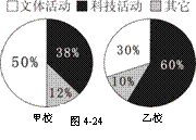 22.(8分)下面两幅统计图(图4-23、图4-24)反映了某市甲、乙两所中学学生参加课外活动的情况.请你通过图中信息回答下面的问题.
