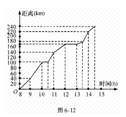 下页这张曲线图(图6-12)表示某人骑摩托车旅行情况,他上午8:00离开家,请仔细观察曲线图,回答以下问题:
