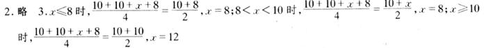 3.某班四个小组人数如下:10,10,x,8.已知这组数据中的中位数与平均数相等,求这组数据的中位数.