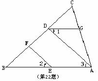 22.(7分)如图,已知EF∥AD,∠1=∠2, ∠BAC=70°,你能求出∠AGD的度数吗?