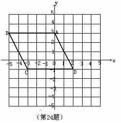 24.(7分)四边形ABCD各个顶点的坐标分别是A(0,3),B(-5,3),C(-3,-1),