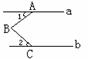 4、如图10,直线a∥b,且∠1=28°,∠2=50°,则∠ABC=_______。
