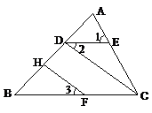 ∵∠1=∠ACB(已知)∴DE∥BC( )